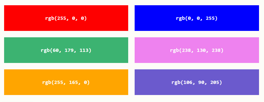 现代计算机的标准颜色系统是24位的,它允许通过不同的红、绿、蓝通道的组合显示大约1670万种不同的颜色,每个通道有256个不同的值(256 x 256 x 256 = 16,777,216)。让我们来看看在CSS中指定颜色的一些方法。